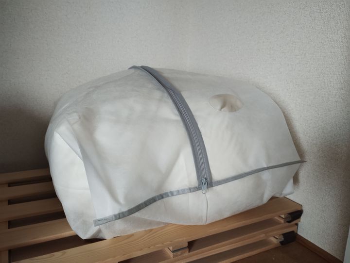 番外編ともいえるこの収納法。近年、布団収納用のクッションカバーが多数販売されています。クッションとして利用すれば、押入に入れず堂々と出しっぱなしにできますね。「そもそも押入に布団を収納するスペースがない!」という方は是非試していただきたいです。