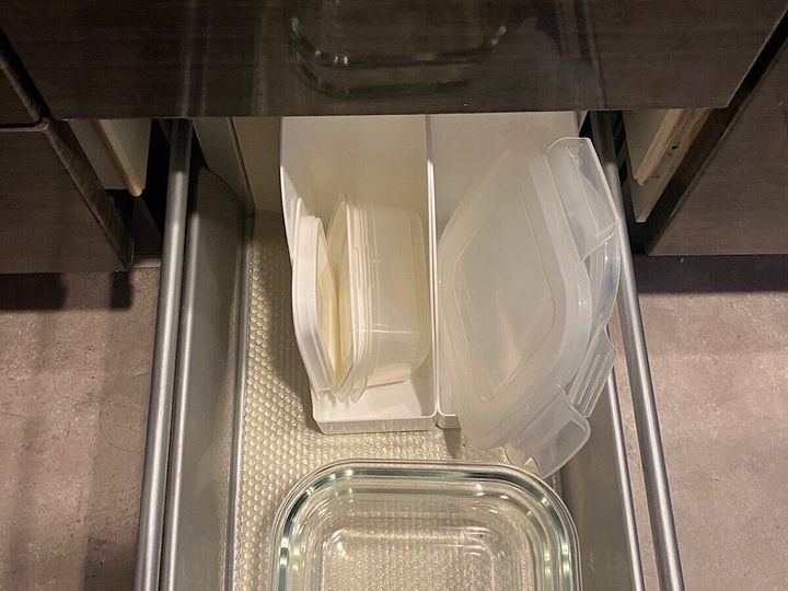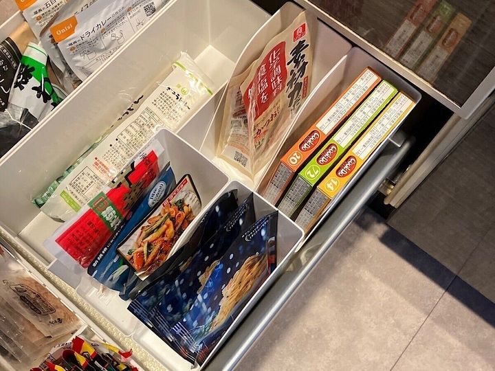 調味料やパスタソースなどの袋を立てることができました。パッとみてわかりやすいです。引出しの中で積み重なって埋もれて、忘れてしまったり期限が切れてしまったりということも防げます。