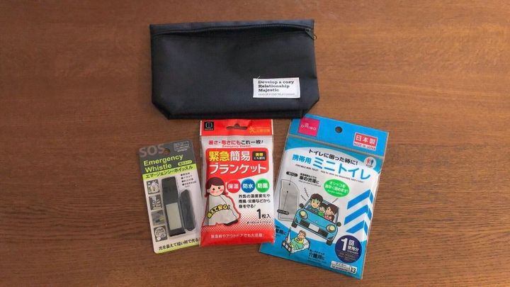 防災ポーチは外出先での緊急時に備えて持ち歩くものです。