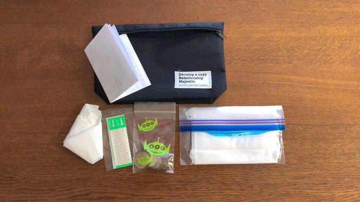 防災ポーチには筆記具やタオル、ティッシュなど普段の通学で常備しているものは省きました。
