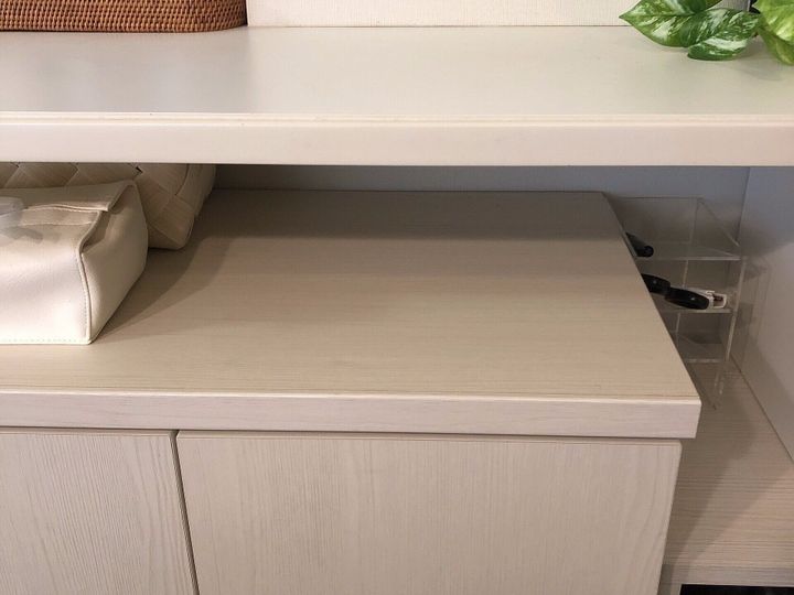 パッと置ける一時置き場としてキャビネットとカウンターの間のスペースをあけています。