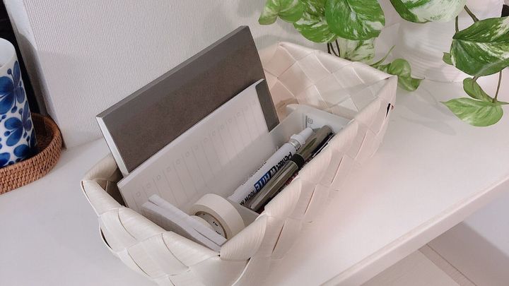 一時置きボックスはあまり大きいと仕事や勉強以外の物もついついいれてしまい、ごちゃごちゃになることも。