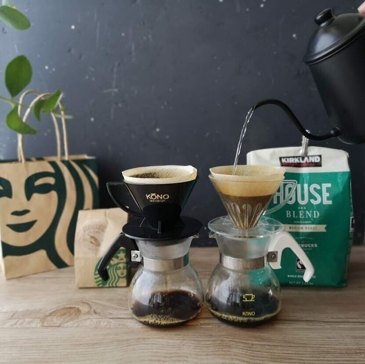 同じコーヒーメーカーを使い、交互にお湯を注ぎ入れて、同時に淹れ終わるように調整して検証しました。
