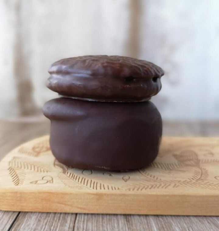 チョコパイの構造はそのままに、スポンジの間にはクリーム、そしてチョコでコーティングされています。