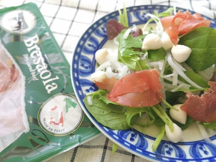 単体ではややクセが強く食べにくい牛肉生ハムですが、サラダにトッピングしたり、サンドイッチの具にしてみたところ、牛肉の旨味が前面にでてきて、とても美味しくいただけました。