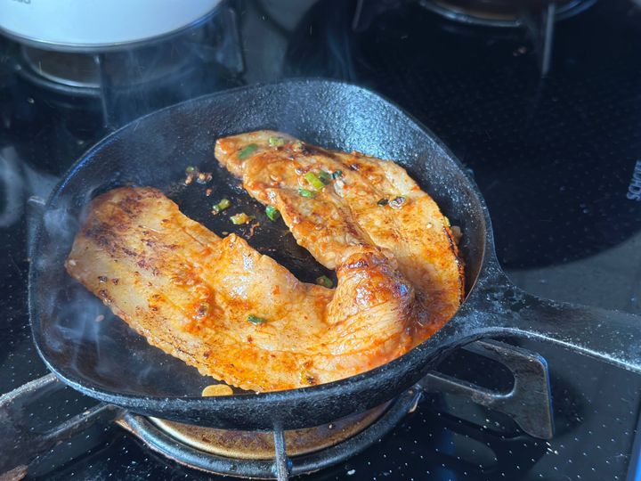 もちろんそのままでもおいしいですが、サンチュにキムチと一緒に包んでも良いですし、ご飯にのせ、韓国海苔をトッピングしても最高ですよ!