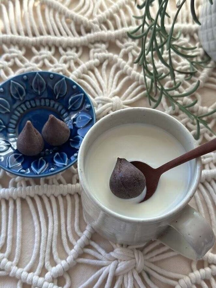 200mlのホットミルクに、3粒ほど溶かすと、甘くミルキーなホットチョコレートが楽しめます。