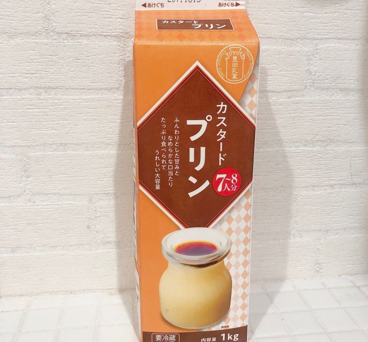 業務スーパーの人気牛乳パックスイーツシリーズのカスタードプリンを使用しました。