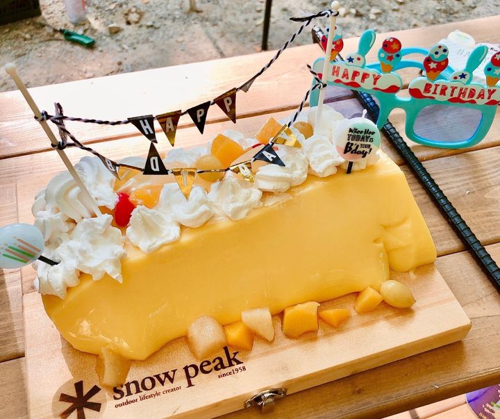 この日は主人の誕生日だったのでキャンプで簡単なプリンケーキを作ってお祝いしました。