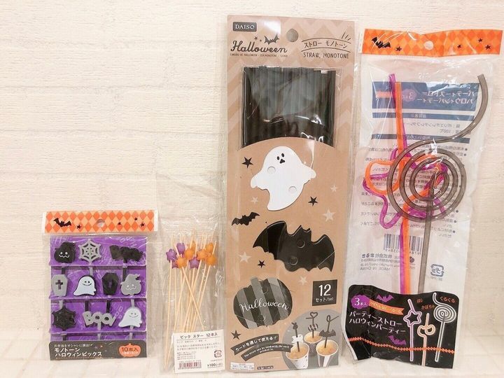 モノトーン仕様があったので購入。ピックをさしたり飾ったりすることでご飯などのハロウィン感がアップするのでマストアイテムです。(セリア)