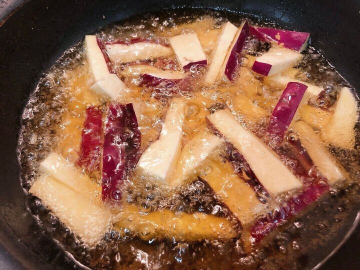 かなりとろみのあるタレなので、揚げたさつまいもと良く絡みます。