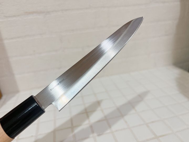 持つ部分(柄)は木製で和な感じですが刃の上部には「Stainless Steel PettyKnife Seki,Made