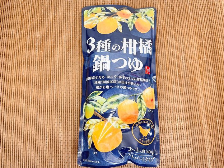 徳島県産すだち、ゆこう、ゆずの果汁を使用した、阿波尾鶏スープ(塩味)をベースにした鍋つゆです。