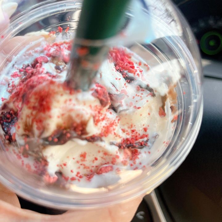 混ぜる前の映えてるビジュアルがもったいないですが、思い切ってストローでぐるぐる混ぜました。