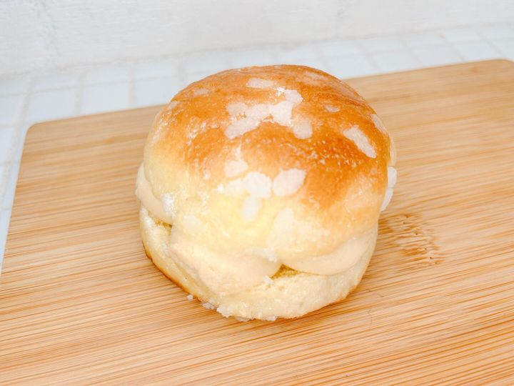 更に中のカスタードクリームも発酵バターが入っているので、バター風味が最高のカスタードに仕上がってます。シュークリームの様にトロトロなクリームではなく、重めのクリームで、たっぷり入っているので食べ応え抜群です。