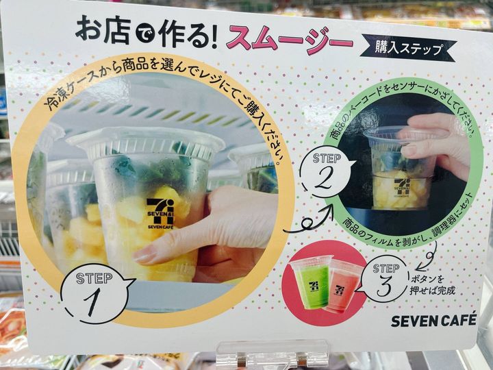 今回はセブンで店舗限定販売ですが、徐々に導入されている『お店で作るムージー』を扱ってる店舗に出会えたのでご紹介します。