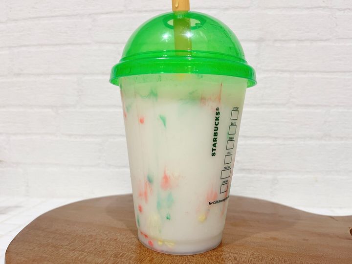 色付きのドリンクを入れると更にポップな感じになりますよ!クリアグリーンのフタがアクセントになって素敵です。