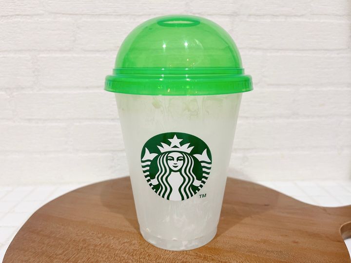 洗って繰り返し使用できる冷たいドリンク専用のリユーザブルカップです。フタがドーム型になっているのでフラペチーノを入れるのに最適です。