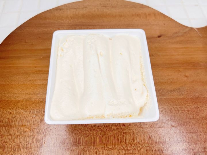 フタを開けると真っ白なクリームで覆われたチーズケーキがお目見え。美しい!
