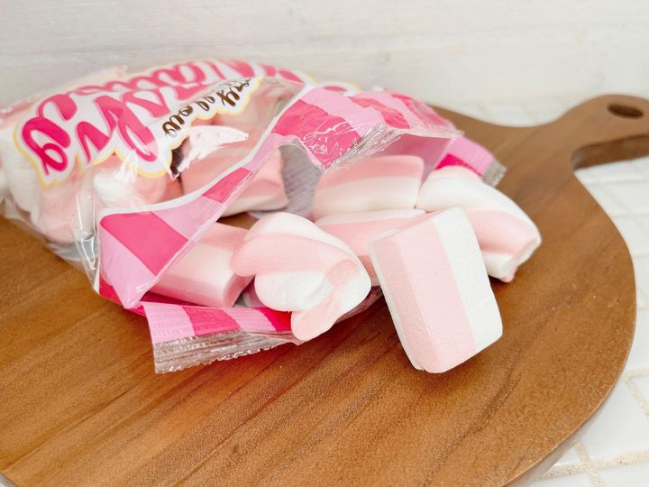 口に入れるとふわふわ食感でしゅわっと溶けてなくなります。ほんのりいちご味の甘すぎないマシュマロで、そのまま食べてもとっても美味しい!