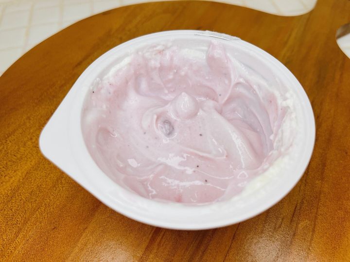 フタを開けるといっけんノーマルなヨーグルトですが、下部にはブルーベリーソースがたっぷり入っているんです!
