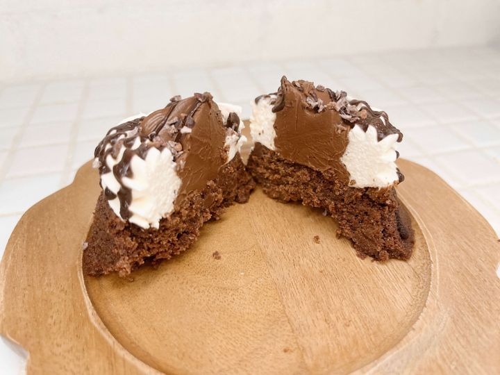 半分にカットしてみるとたっぷりのクリームとガナッシュがのってるのがよく分かります。