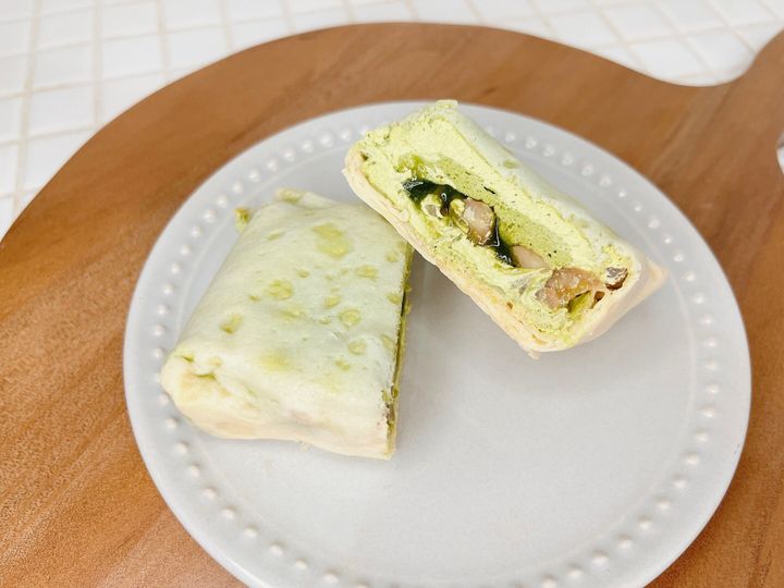 シュー生地の中には、抹茶カスタードホイップと抹茶ホイップクリームの2種類のクリームが入っています。