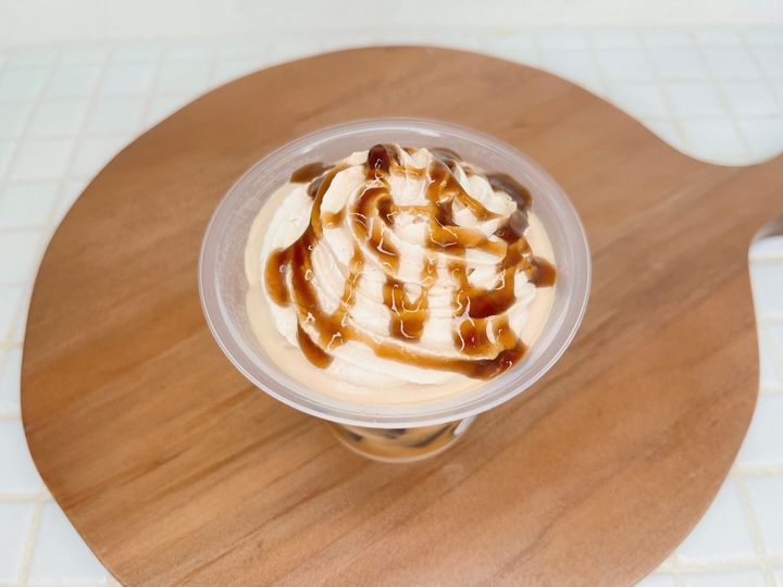 過去にも何回か「クリームたっぷりコーヒーゼリー」は販売されていましたが、今まではノーマルなホイップの上にココアパウダーがトッピングされていました。今回はリニューアルされ、ほんのりブラウンのコーヒー風味のホイップとコーヒーソースがかかっていて、今まで以上にコーヒーづくしになっています。
