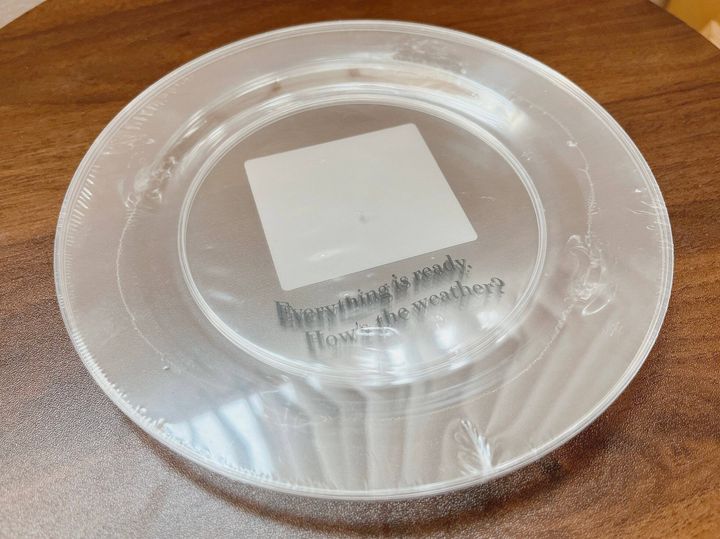 プラスチック製の使い捨てプレートです。Sサイズ(6枚入セット)とMサイズ(4枚セット)の2種類あり、Mサイズを購入しました。