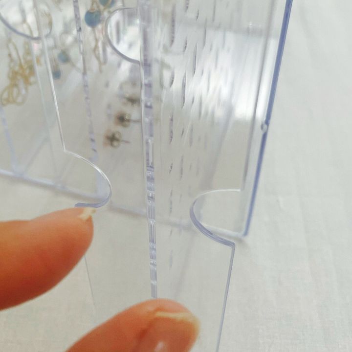 長さの違うピアスもケースの穴の位置をずらして収納することでキレイに収納することができました!