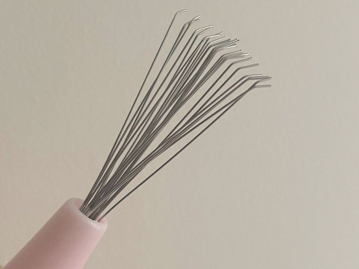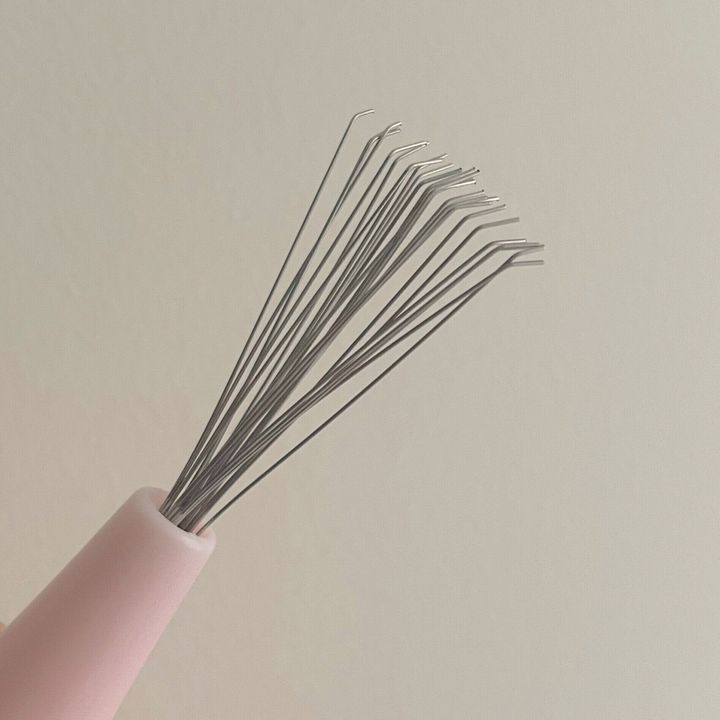 ピンクの持ち手の先にステンレス製の細い針金が20本以上付いています。