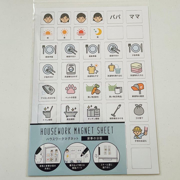 こちらはトイレ掃除や洗濯など家事を分担する時に役立つマグネット。