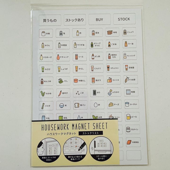 このマグネットを使って管理することで、買い忘れをなくせたり家事の分担がスムーズにいくかもしれませんよ。