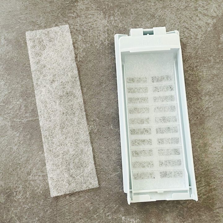 わが家の糸くずフィルターのサイズは、縦半分にカットしたサイズで幅がピッタリでした!