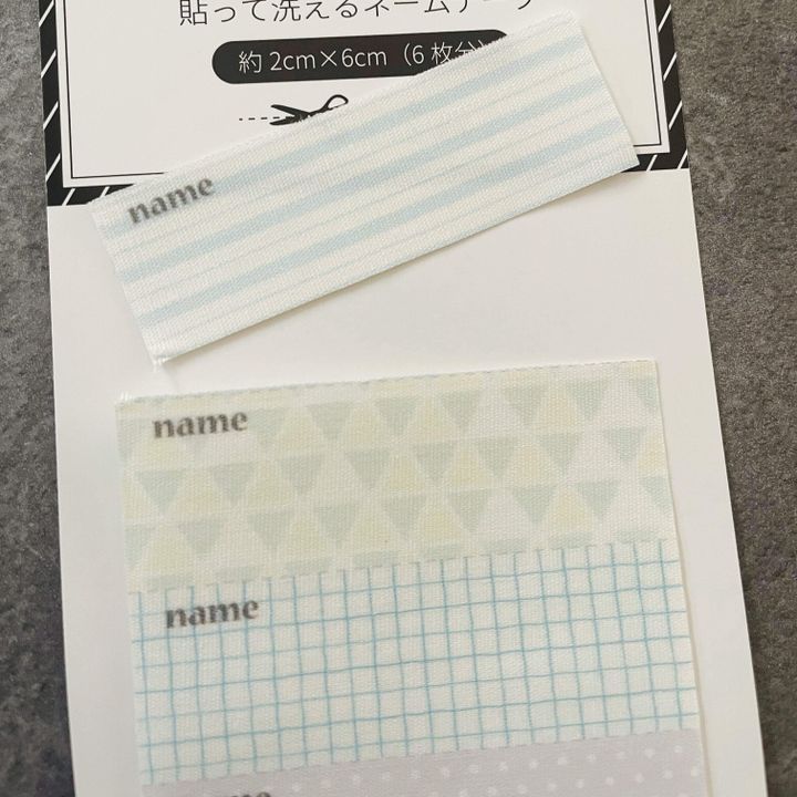 タグの裏側のはくり紙を剥がし、洗濯タグに貼り付けました。