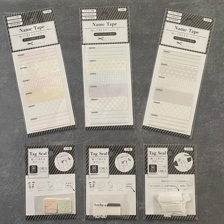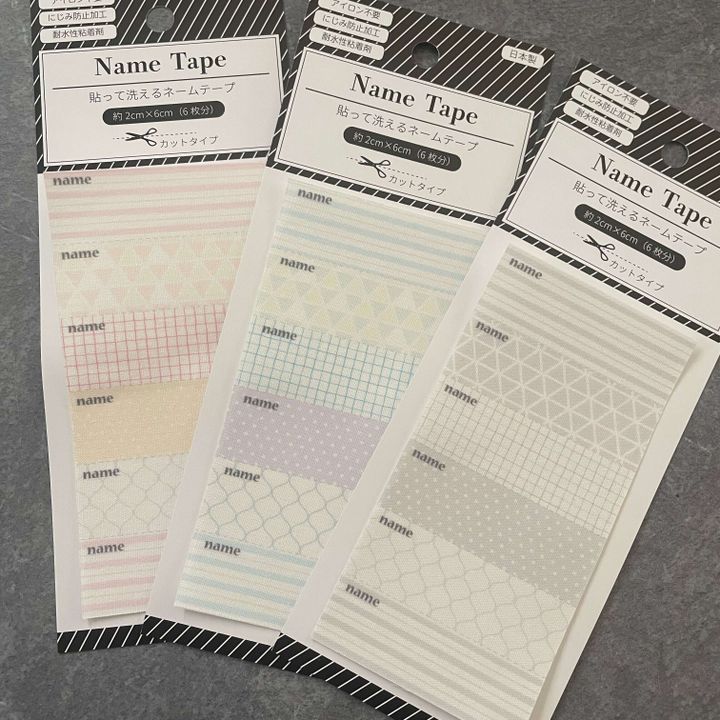 ボーダー柄やドット柄など5種類6枚がセットになったネームテープ