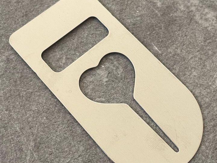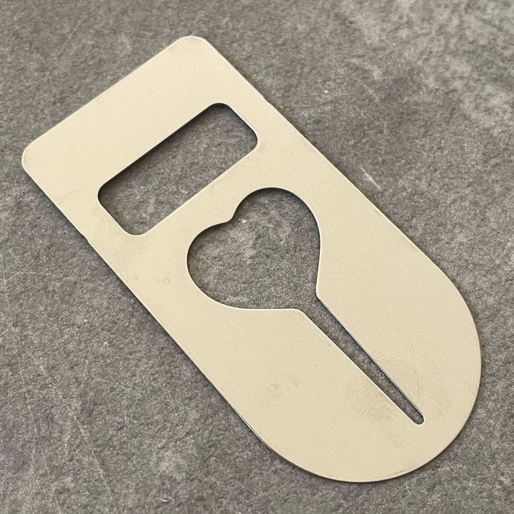 ハートの型抜きが印象的なステンレス製。シルバーの見た目が一瞬「栓抜き」と思うほどの見た目です。