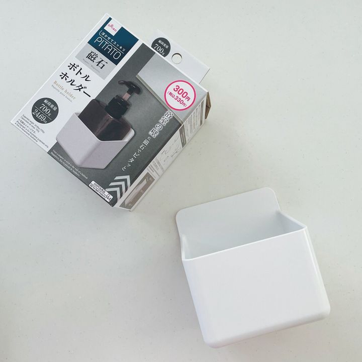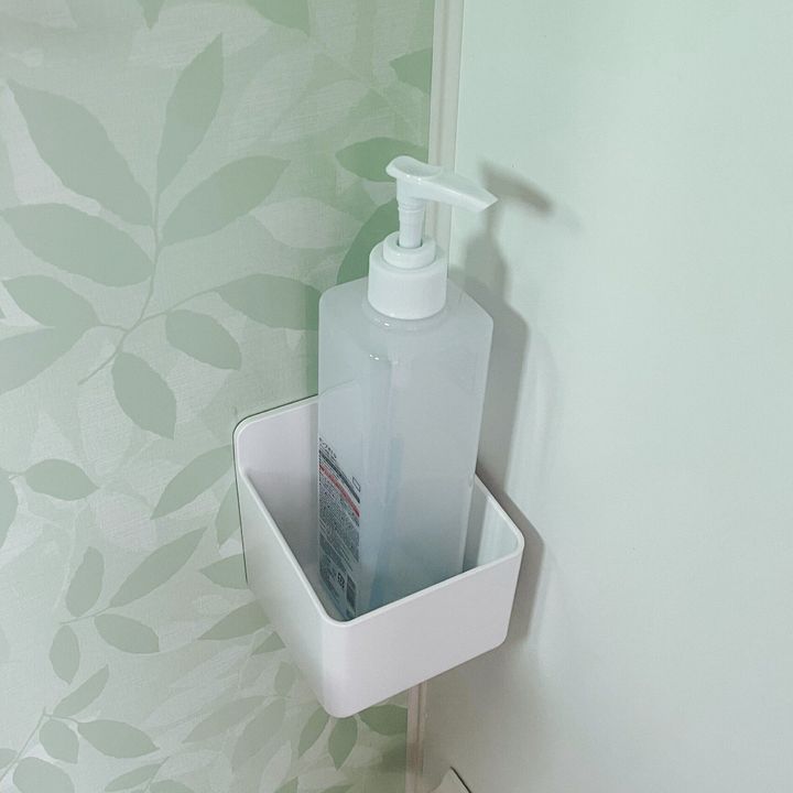 バス用マグネットで浴室に張り付きボトルを収納できる商品。