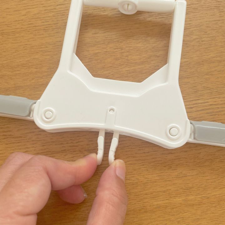 中央にあるツマミを合わせるようにするとアーム部分が折りたたまれるので、洗濯物を取り込み畳む際にツマミを合わせてアームを折りたためば首元から簡単にハンガーを引き出すことができます!