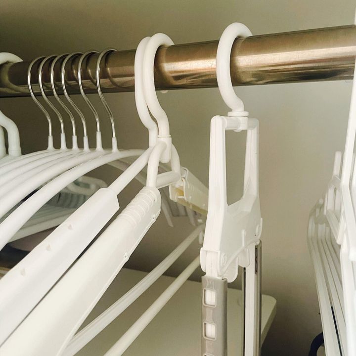 ハンガーのアーム部分を折りたたむととってもコンパクトになるので、ハンガー収納にも場所を取らず省スペース!