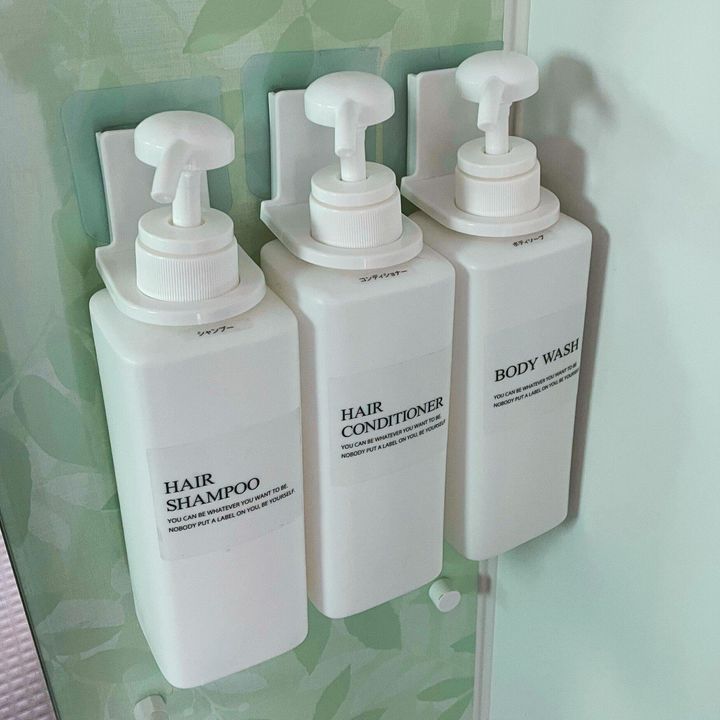 我が家はこちらのシャンプーホルダーを3つ購入し、シャンプー、コンディショナー、ボディーソープを浮かせる収納に!