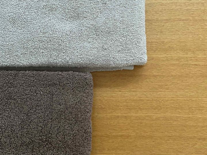 ベージュの方は今まで使っていたバスタオル。ブラウンの方が今回購入したスリムバスタオルですが、長さは今までのと同じです。