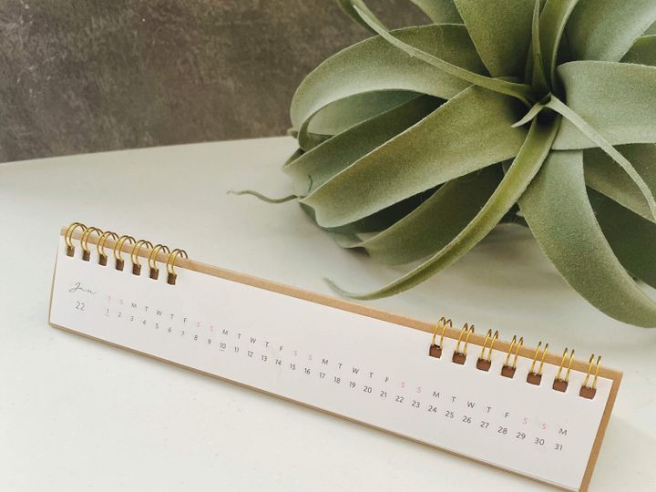 ブラウンの紙製の台紙にホワイトのカレンダー