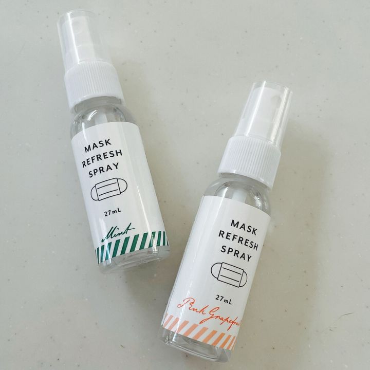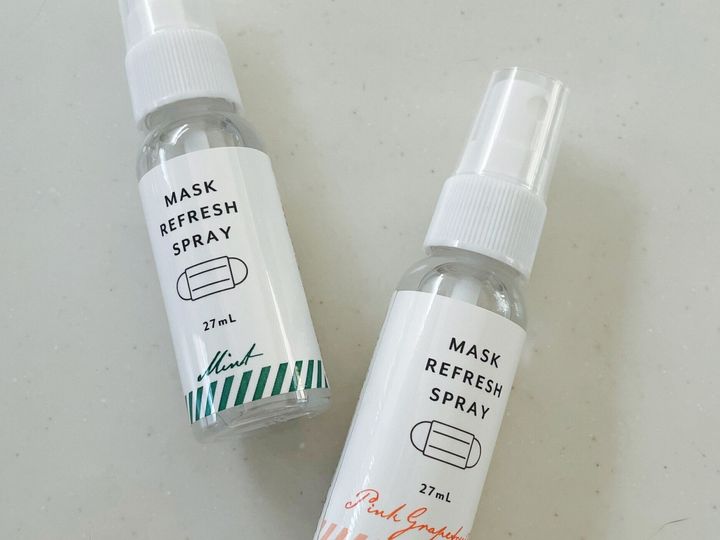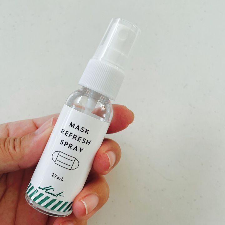 ミントスプレーを吹きかけたマスクを装着すると、とっても強いミントの香りがします。