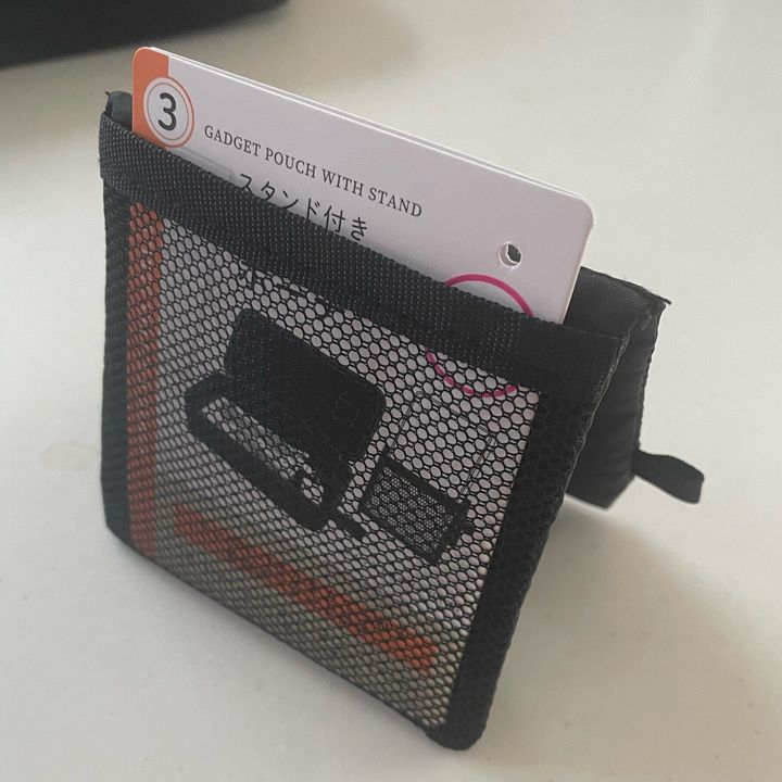 左のガジェットポーチはスタンド付き!1位のポーチに似ていますが若干小さめです。