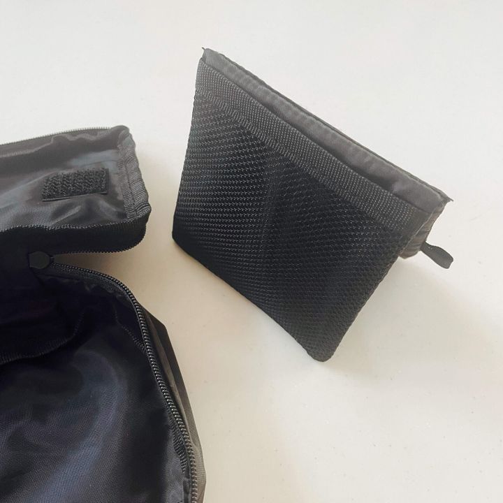 3つのポーチには固定用バンドがついており、PCバッグなどに吊り下げて使えるのも持ち出し時にとても便利。