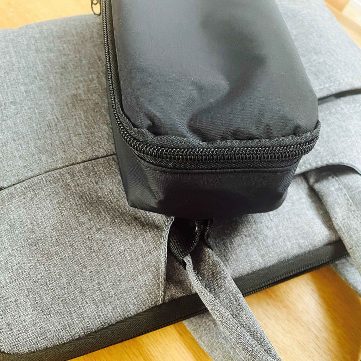 手持ちのPCバッグの持ち手に取り付けてみましたが、しっかり取り付けできるのでスマートに持ち運びできそうで気に入りました。