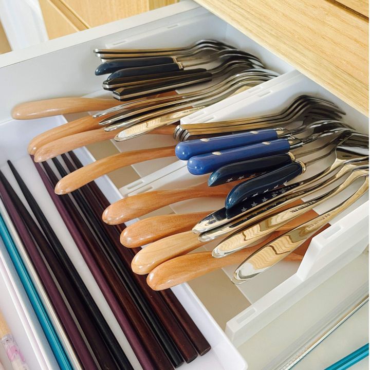容器の斜め収納の形状を活かして、わが家ではフォークやスプーンなどのカトラリー収納としても採用!