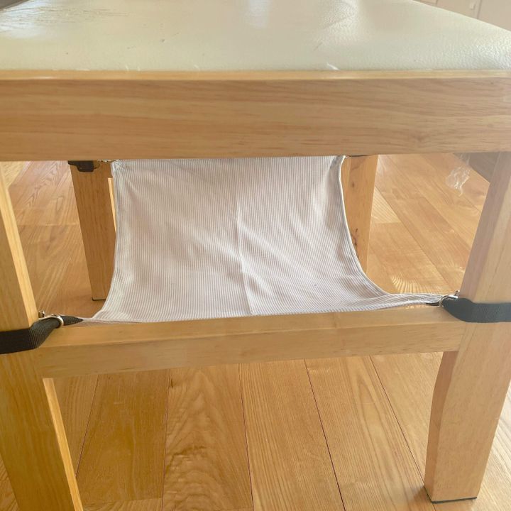 わが家は専用ケージを設けていないので、リビングにある椅子の下に取り付けて使用したいと思います。
