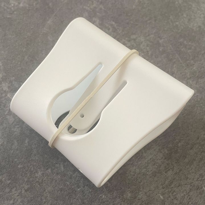 商品説明にはありませんでしたが、こちらの商品は折り畳めるほど柔らかいので輪ゴムで固定してみたところコンパクトになりました!